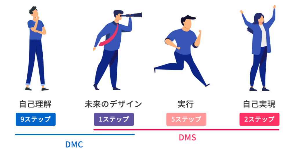 DMCでは、「①自己理解」と「②未来のデザイン」までの